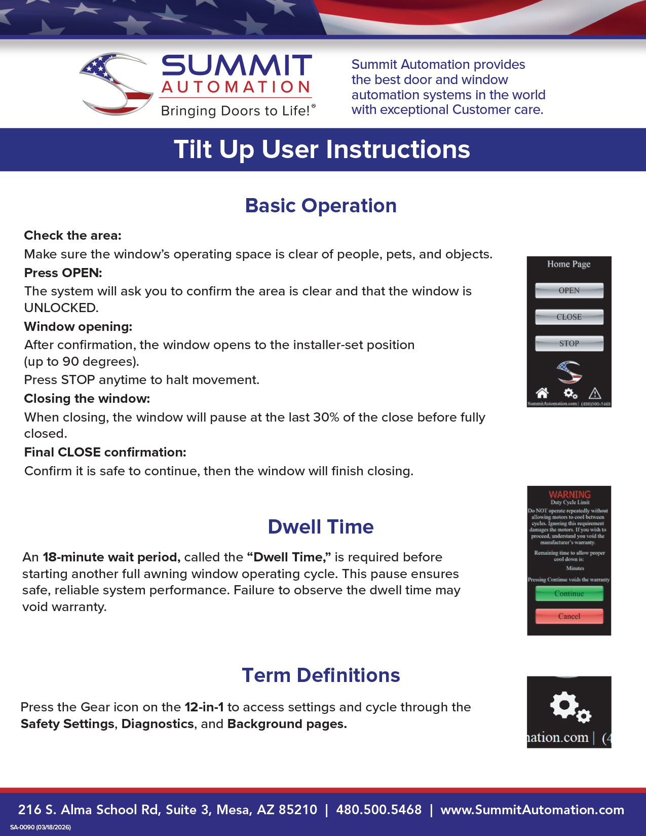 SA-0090 Tilt Up User Instructions